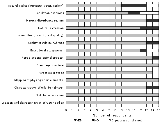 The overall response rate (52%) suggests that the information collected provides a fairly realistic picture of the situation of organizations practising ecosystem-based forest management in Canada. The results show that ecosystem-based forest management is still in its infancy in Canada, particularly because of the lack of a clear consensus on its definition and application, the small number of organizations identified by this survey and the diversity of tools and practices used.