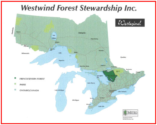 Five years ago Westwind Forest Stewardship Inc. was created to manage a 540,000 ha forest in central Ontario. The forest was named the French Severn Forest (FSF) after the rivers that bound it north and south. This was a result of a major policy shift in government which moved forest management from government to the private sector across the province. Westwind is different from other forests in the province because it is a non-profit, community based forest management company certified by the Forest Stewardship Council (February 2002). It has a seven member, consensus based, Board of Directors (Board): 4 community members and 3 forest industry members. Community members have no connection to the forest industry. Forest products companies are clients of Westwind. This turns the forest into a "profit centre" rather than the standard cost centre model typical in Canada. Westwind effectively turns "profits" back to the forest estate. The absence of shareholders encourages responsiveness to community aspirations; and a balance between finance and environment.