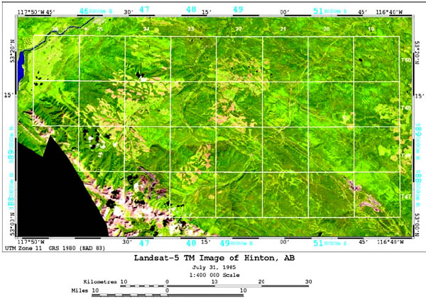 Figure 1. Study area near Hinton, Alberta; from 1985 Landsat (5, 4, 3).