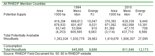 Table 1: Total Wood and Biomass Energy Consumption 1995/96 >In FAO - RWEDP Member Countries