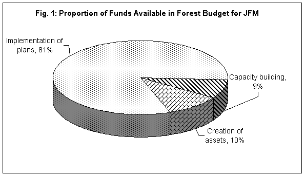 The tools used to ensure asset building for these communities sustain the interest of the communities in forest management. The upscaling of social and human capital (DFID, 2000), through investment of 12% in asset creation and 3% in capacity building from all development schemes for the committees, ensures sustainability in the model. Institutional support from the forest budget earmarks 81% of investments for plan implementation, 10% for creation of assets and 9% for capacity building (Figure 1). In addition to this, job creation through plan implementation contributes to the alleviation of poverty.
