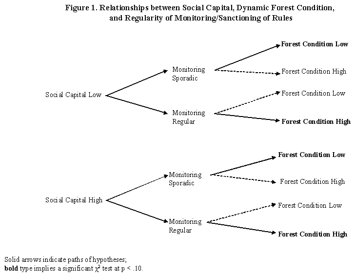 Hypothesis A. If social capital is low and rule enforcement is sporadic, we expect forest condition to be poor.