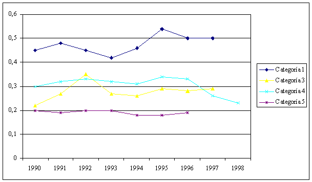 por categorías de prevalencia de subnutrición (1990-1998)