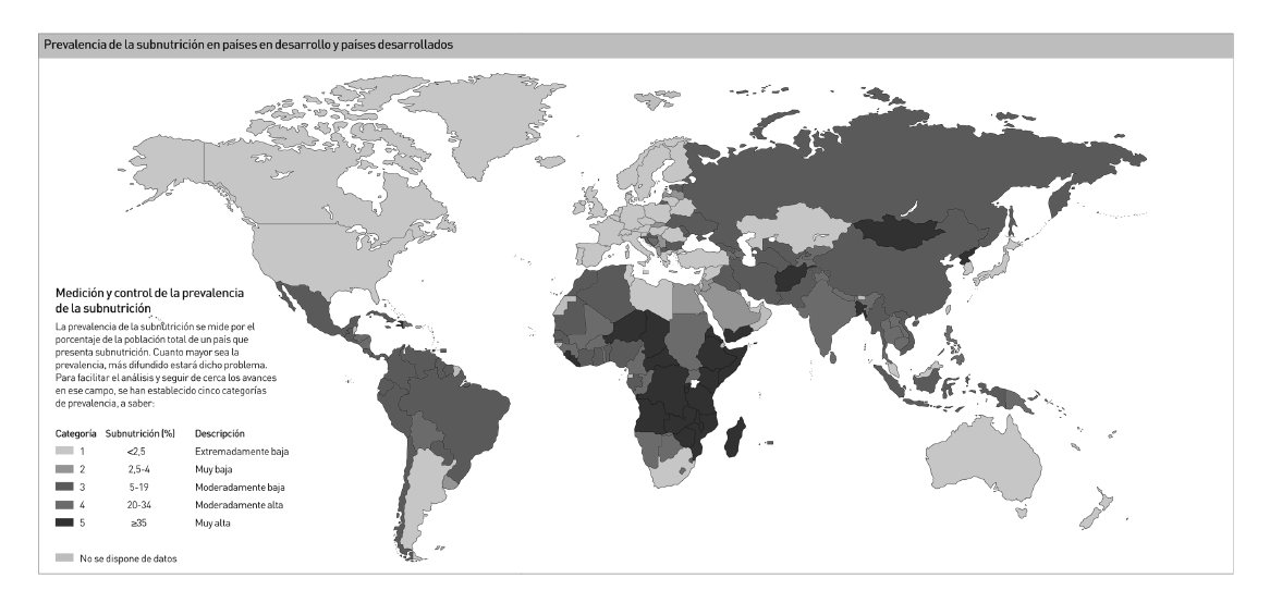 de la agricultura, por Categorías de prevalencia de subnutrición