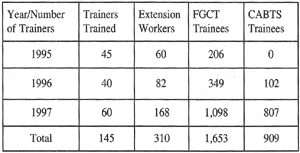 Following the success of this training the EET activities were expanded in 1996 to two other counties. During the year, the numbers trained included the following: