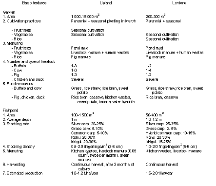 In the lowland areas of North Viet Nam, the integration of garden, livestock and fish culture is also common. Usually, houses are constructed close to the pond. In sandy regions, the houses are often built at some distance from the pond for hygienic reasons.