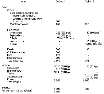 In the Third Malaysian Plan, fish culture is being promoted in a larger scope. Subsidies are given by the government for pond construction. Fish seed supply is provided as well as training and exten-sion. This system benefits family consumption by providing enough supply of protein. Moreover, it can be a source of additional income.