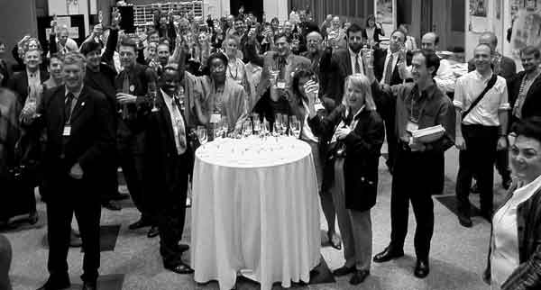 Délégués du Comité intergouvernemental pour la négociation de la Convention sur les polluants organiques persistants, saluant l'achèvement des négociations