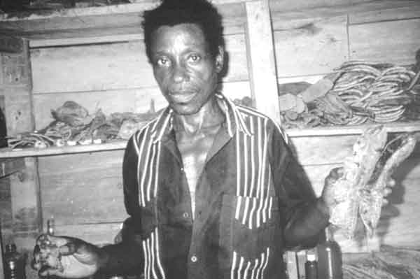 Vendeur de plantes médicinales à Bata (Guinée équatoriale). La plupart des secteurs commerciaux s'occupant de bioprospection font appel au savoir traditionnel