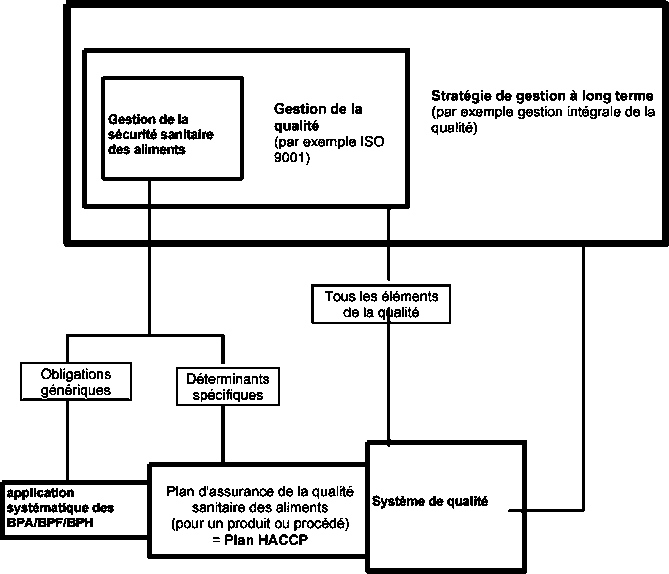 Lanalyse des risques et le points critiques pour leur maîtrise (HACCP) est un système de gestion de la sécurité sanitaire des aliments qui repose sur lidentification et lévaluation systématiques des risques dans les aliments et définit des moyens pour maîtriser ces risques Il sagit dun élément important dune approche intégrée de la sécurité sanitaire des aliments. Les relations entre le système HACCP et les autres instruments utilisés pour la sécurité sanitaire des aliments sont illustrées dans la figure 7.