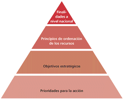En la Figura 3.1 se indican los elementos de un marco general de política forestal y la jerarquía de las finalidades, principios y prioridades para la acción.