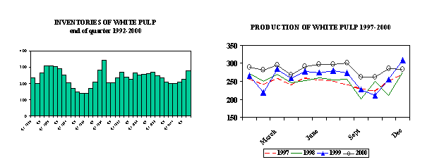 At the end of December, producers' inventories of white pulp were 276 000 tonnes, up 78 000 tonnes on end 1999.