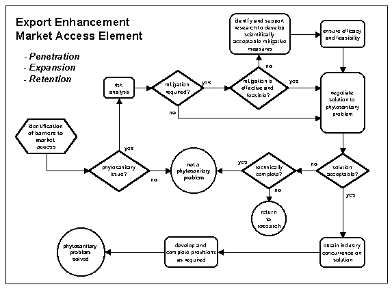 17. Figure 1 is a summary flowchart describing the processes and decision points typically associated with market access (including market penetration, expansion, and retention). It is useful to note the key role played by risk analysis and the importance of interaction between trading partners as well as between phytosanitary officials and the private sector.