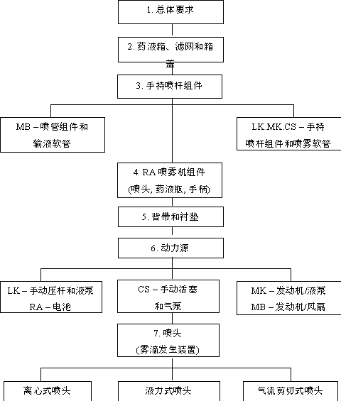 关键词:LK – 背负式手动喷雾器, MK –背负式液力喷雾机, CS –压缩式喷雾器, MB –背负式气力喷雾机, RA – 离心式喷雾机 图 2 - 拖拉机悬挂和牵引喷雾机的组件模块
