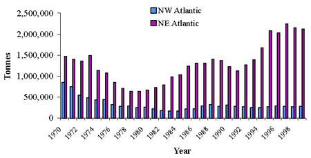 Landings of herring: NW and NE Atlantic, 1970 - 1999