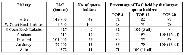 (rights)-holders relative to some of the other major fishing sectors in South Africa in 1996
