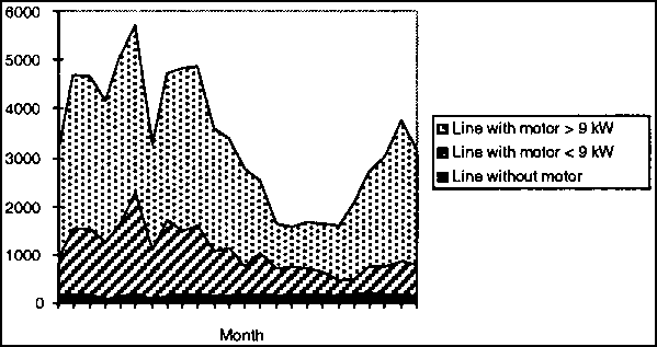 The results can finally be presented in a very general way summarizing the principal points elucidated by the analysis. Figure 12 illustrates the presentation of the profile of the Moroccan coastal fleet according to technical characteristics that was included in the report produced within the framework of technical assistance to the programme of modernization and development of the marine fisheries sector (FAO Project UTF/MOR/017/MOR; Technical Report 14; Annex 4; Taconet and Boumediene, October 1998).