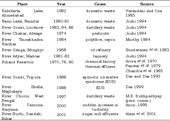 Table 2. Reports of mass mortalities of fish in India.