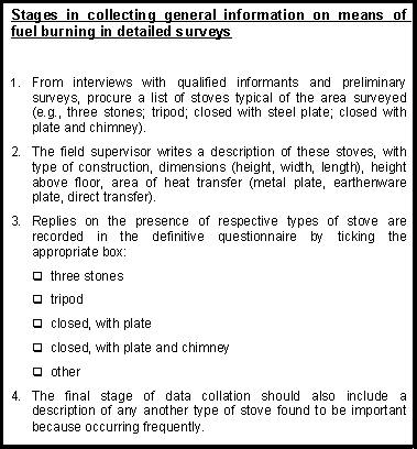 In detailed surveys, information on types of fuel is obtained by interviewing users. The most reliable tool is the direct question incorporated into a structured questionnaire used in surveys or censuses, together with first-hand observation or measurement. How to devise questionnaires is dealt with in Chapter 4.
