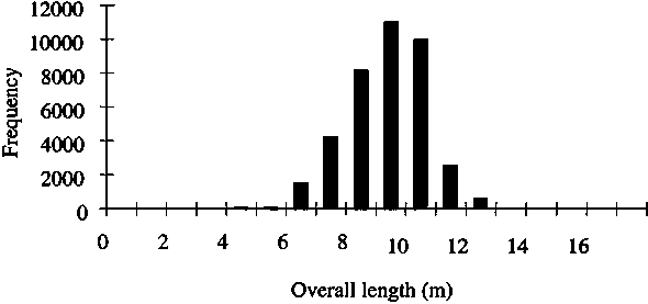 Figure 1. Frequency histogram of recorded catches by vessel length (m) for iceboats