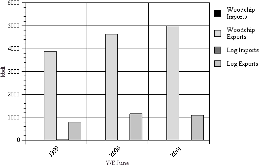 Trade in woodchip and logs: 2000/01 (kbdt)