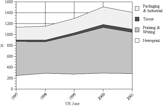 • On a proportional basis packaging and industrial grades accounted for 35 percent of total sales in 2000/01.
