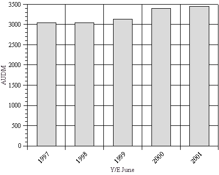 • While the volume of paper and paperboard remained stable in 2000/01, the value of goods consumed rose to AUD 3 457M.