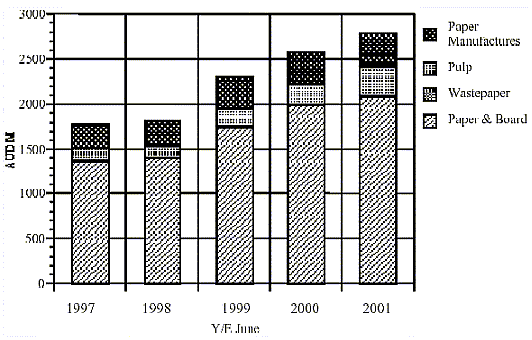 • Since 1996/97, imports of paper and paperboard have increased at an average rate of 5.5 percent per annum.