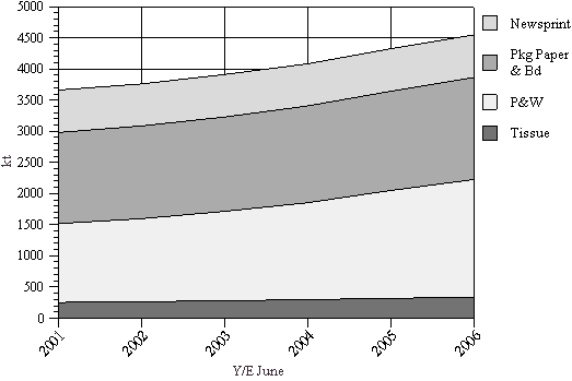 • Assuming that the consumption of newsprint remains static, it could be expected that the demand for paper and board would grow 884.7 kt to 4 545.7 kt by 2005/06.