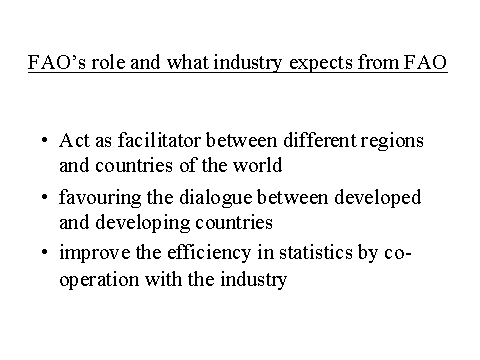 The function of the Organization to "...collect, analyse, interpret and disseminate information relating to food, nutrition and agriculture" (Article I of the Basic Texts of FAO), remains one of the core competences of FAO. Activities in forestry sector statistics and information will continue on: