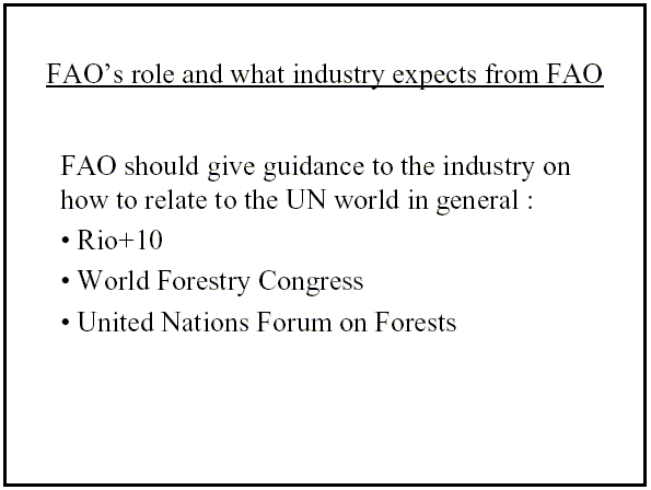 Critical support will be provided to the formulation and promotion of policies for sound development of forest-product industries and trade, including non-wood and wood-based forest products. Special emphasis will be given to the inter-actions between social, economic and environmental dimensions.