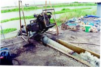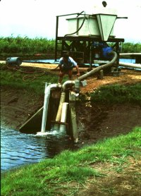 More expensive pumps are used in some countries; this one is being used to harvest freshwater prawns (Hawaii)