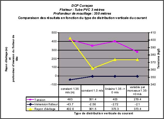 Dans le cas du DCP de Martinique la comparaison des effets des deux types de modification de sa structure, - augmentation de la longueur de la ligne de mouillage ou augmentation de la flottabilité, permet le cas échéant de choisir une nouvelle configuration en fonction dun critère donné, par exemple le coût de la modification.