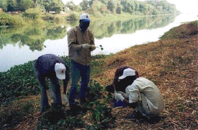 Un projet financé par le Programme des Nations Unies pour le Développement (PNUD) a été effectué durant la période 1994 - 1999, adressé spécifiquement au (a) contrôle de la jacinthe d'eau, de la salade d'eau et à la fougère d'eau en utilisant leurs ennemis naturels; (b) surveiller la dynamique de population des plantes cible et des agents de lutte biologique; (c) étudier la biodiversité dans le milieu aquatique; (d) renforcer les capacités nationales en termes de lutte intégrée et coordination avec projets conduits dans d'autres pays; et (e) disséminer les résultats des travaux dans d'autres pays ayant des problèmes similaires. Durant ce projet des spécialistes en mauvaises herbes ont été formés, quatre agents de lutte biologique ont été importés avec succès, élevés et relâchés (les charançons Neochetina bruchi et N. eichhorniae contre la jacinthe d'eau; le charançon Neohydronomus affinis contre la salade d'eau; et le charançon Cyrtobagus salviniae contre la fougère d'eau). Ils sont tous établis. Des tentatives d'élever le lépidoptère Niphograpta (Sameodes) albiguttalis contre la jacinthe d'eau ont été sans succès. Un certain contrôle de la jacinthe d'eau a été obtenu, mais étant donné l'infestation très forte, des moyens additionnels seraient désirables pour obtenir un contrôle assez rapidement. Un contrôle satisfaisant de la salade d'eau a été obtenu. Ce projet a été mené avec la collaboration du CSIRO, qui a fourni des consultations et de l'Institut International pour l'Agriculture Tropicale (IITA), qui a fourni des agents pour la lutte biologique.