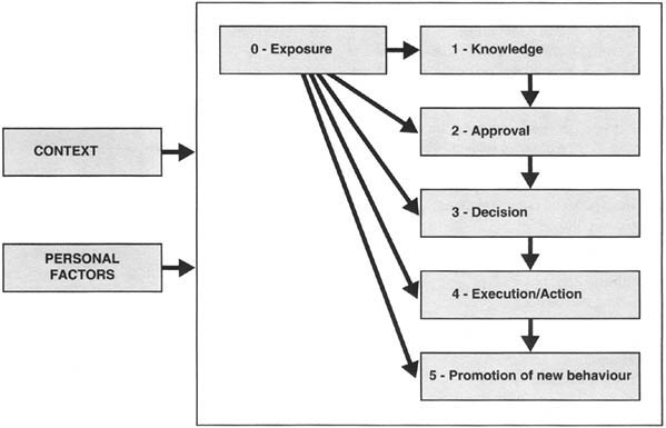 It should be stressed, however, that behavioural change rarely comes through one single media. Most people need to talk things through with someone else with more experience than themselves, before making their own judgement and experimenting with an innovation. In effect, this means that all information has first to be properly assimilated and evaluated according to its usefulness and relevance to the particular problems of the receiver before s/he takes any action. One essential part of this process is a direct interview.