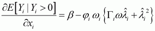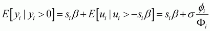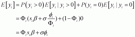 The prediction of yi, given si, can be obtained from the different expectation functions: unconditional and conditional expectations. Following Maddala (1983) and McDonald and Moffitt (1980), unconditional expectation can be obtained from the derivative of Equation 3.9 without the subscript i, which denotes observation: