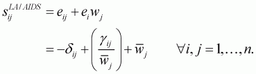 For the AIDS model, following Buse (1994), Equation 3.53 is