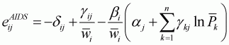 The model defined by Equations 3.41 to 3.43 is called the AIDS model.
