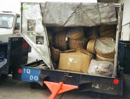 Smoked fish arrive packaged in cardboard or polystyrene boxes. Each box contains between 12 - 25 kg of smoked fish. Boxes of herring are typically around 10 kg. Figure 5 shows typical packing of foodstuffs into air cargo containers. Figure 6 shows a consignment of smoked fish from Ghana recently arrived at Gatwick Airport.