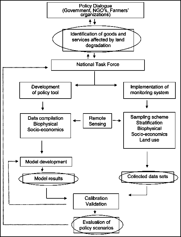 Land degradation and the resulting environmental problems are predominantly induced by human activities. Only when the causes and the impacts of the resulting pressures on the system are known can adequate responses be formulated. To qualify and quantify the driving forces, pressures, state, impacts and responses, indicators need to be found that adequately represent the various aspects of the complex situation.