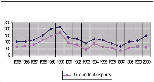 Low world markets prices generally make it more difficult for small agricultural producers in many developing and LDCs such as Senegal to compete internationally and even in their own home markets. The situation of the world cotton and potatoe sectors illustrates this point whereby the prices received by producers are so low that many domestic producers are calling for protection. Ironically, groundnut producers in Senegal have often been advantaged by the relatively low price levels observed in the world vegetable oil markets thanks to an industry scheme which levies import duties on subsidized vegetable oil entering the country and redistributes this money to producers.