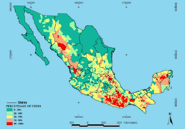Figure 5. Saturation of fuelwood users at the “municipio” level. Mexico 2000