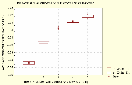 • Discrete annual growth rate of exclusive fuelwood users (1990-2000).