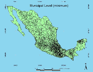 The “municipio” (county) was selected as the minimum administrative unit of analysis for conducting the WISDOM analysis (Fig. 4). A geo-referenced database that covers the whole country and is articulated into the state and national level is available from the Mexican National Bureau of Statistics (INEGI). A total of 2,460 units were identified and incorporated into a GIS. For each unit, basic information such as coordinates, area, and perimeter is available. Because around 70 “municipios” have changed since 1980 (new ones have been created and some have merged), the database needed to be harmonized and checked for consistency, leaving only those “municipios” that can be tracked in the twenty year period.