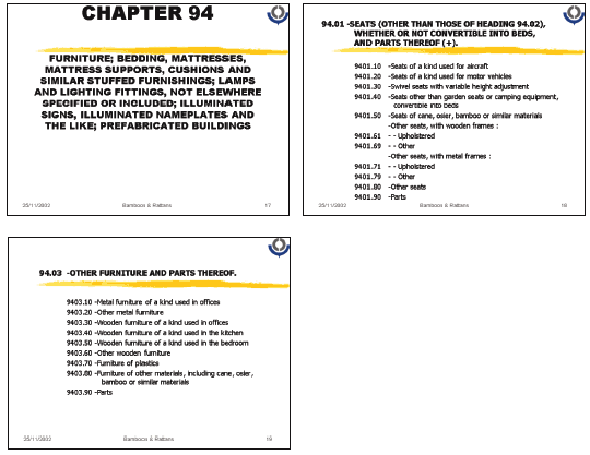 * Seek modification of national trade coding and international HS trade coding to secure greater visibility of important bamboo and rattan products in international trade statistics.