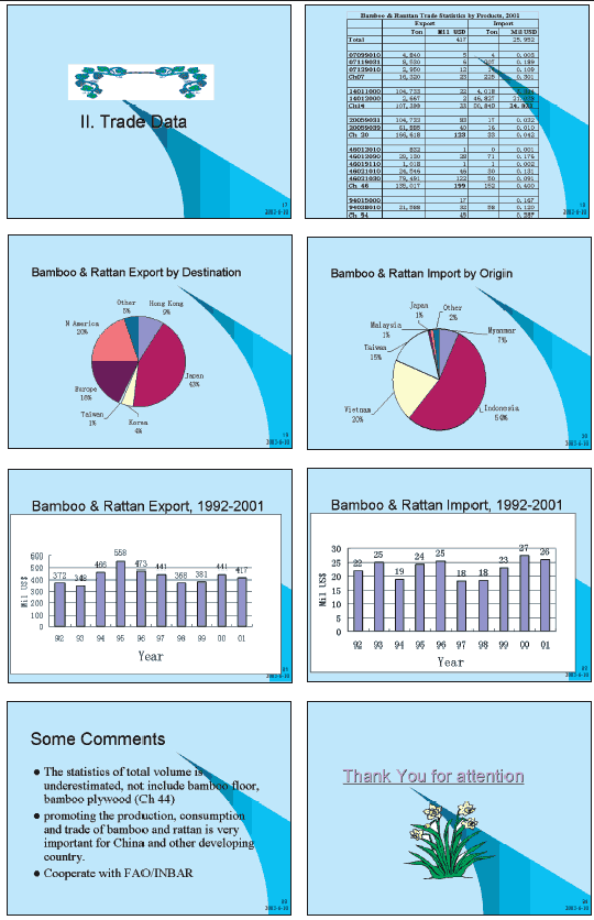Bamboo and rattan are important renewable resources in member countries of INBAR. The largest exporters of their products are both INBAR members and producer countries in ITTO. The large importers of the products are consumer countries in ITTO.
