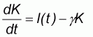 where I(t) is the gross rate of investment (in physical terms) and g (a constant) is the rate of depreciation.