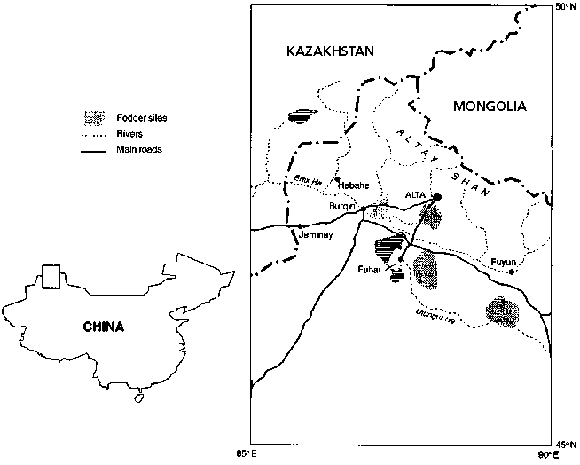 FIGURE 6.2. Location of the projects fodder sites in Altai Prefecture, China.