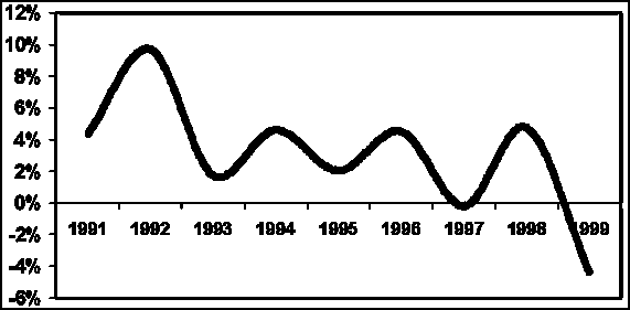 Figure 3.2 Per capita GDP: Annual growth rate, 1990-1999
