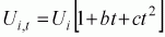 Cornwell, Schmidt and Sickles (1990) replace the firm effect by a squared function of time with parameters that vary over firms (i.e. ). Kumbhakar (1990) also allowed a time-varying inefficiency measure assuming that it was the product of the specific firm inefficiency effect and an exponential function of time, such that: